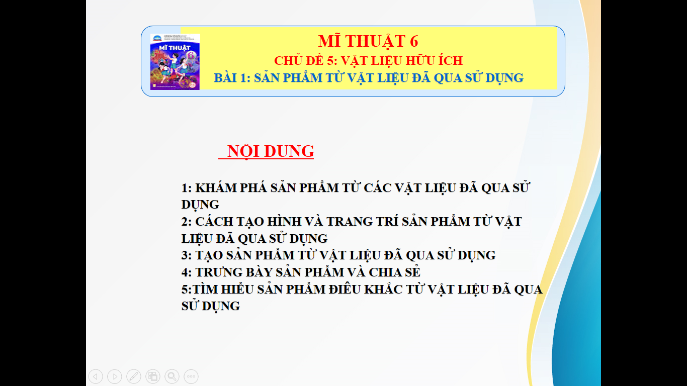 Mỹ thuật 6. BÀI 1: SẢN PHẨM TỪ VẬT LIỆU ĐÃ QUA SỬ DỤNG